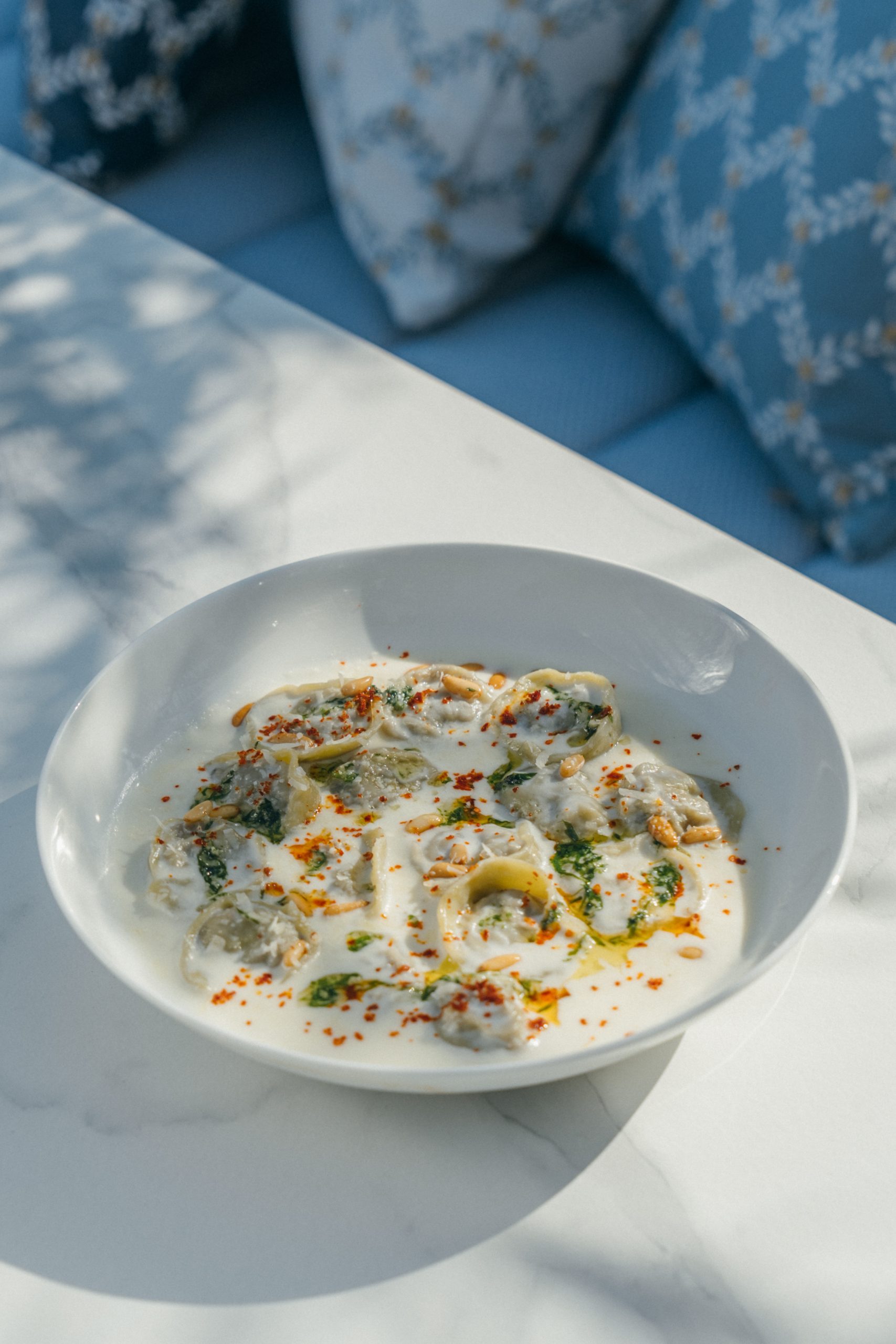 Indulge in our menu of progressive Lebanese cuisine on an open-air deck set along the sandy white beach of Vista Mare, or get cozy on our indoor terrace with stunning sea views.